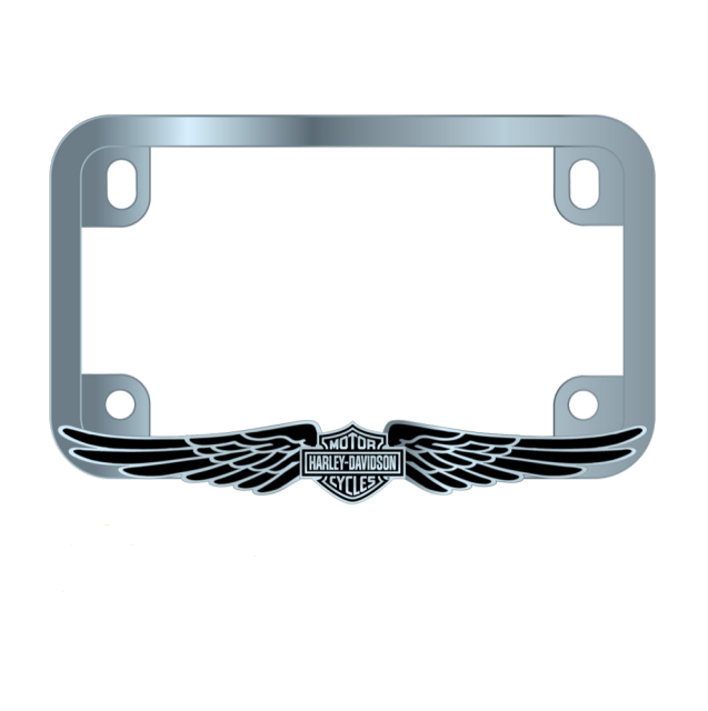 Enhance your motorcycle's aesthetic with the Bar & Shield with Wings Premium Metal Motorcycle License Plate Frame. Crafted from durable metal, this frame features the iconic Harley-Davidson Bar & Shield logo with wings, adding a classic touch to your bike's license plate. The premium metal construction ensures longevity and style, while the frame includes pre-drilled holes for easy installation. Perfect for showcasing your passion for Harley-Davidson, this frame combines functionality with distinctive design, making it an ideal choice for motorcycle enthusiasts.