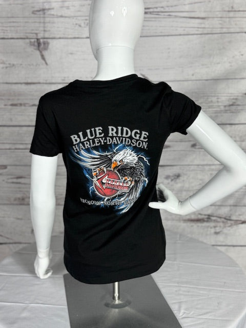On the back, our custom Blue Ridge Harley-Davidson logo adds a signature touch, tying your style to the open-road spirit. Made from soft, durable cotton, this tee combines comfort and playful biker attitude in one versatile piece.