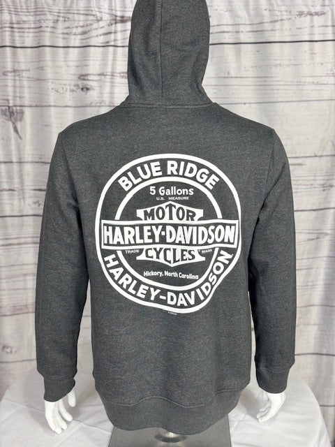Stay warm while keeping your style bold with the Harley-Davidson® Men’s Font Hoodie. The dark grey heather pullover features a clean, powerful Harley-Davidson® block font across the chest for a look that never goes out of style. The back takes it up a notch with our exclusive Blue Ridge Harley-Davidson logo, making this hoodie more than just comfortable—it’s a statement. With its soft fabric, drawstring hood, and kangaroo pocket, this piece delivers all-day comfort with a fearless edge.