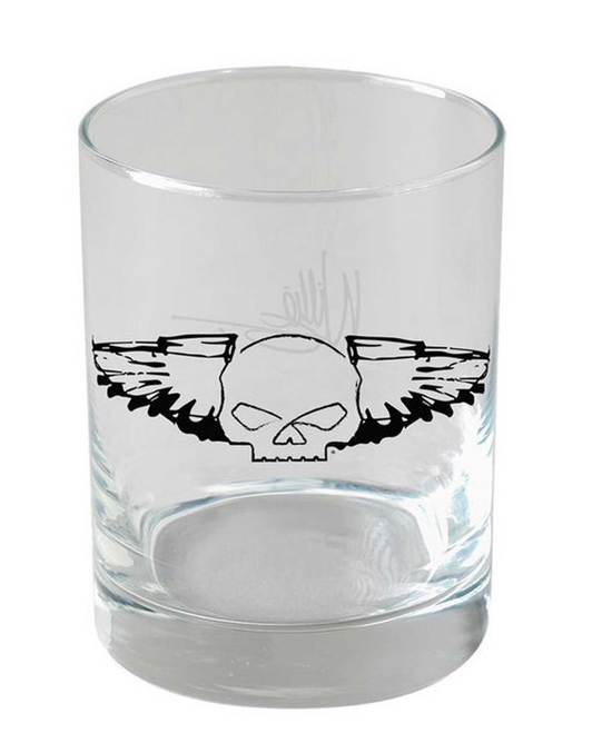 Elevate your drinking experience with the Harley-Davidson® Willie G Sketch Silver Wings Double Old Fashion Glass. This 13.5 oz. glass showcases a detailed 3D digital print of the Willie G. Wings graphic on the front, with Willie G.'s signature elegantly displayed on the back. Proudly made in the USA, this glass is a distinctive choice for any collection.
