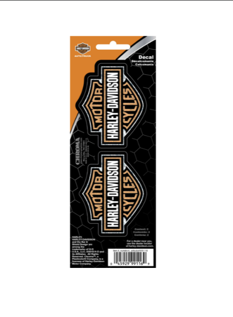 Add a bold touch to your ride with the Harley-Davidson® Bar & Shield 2-Piece Holographic Decals. Featuring two vibrant orange Bar & Shield decals, these holographic stickers are easy to apply and adhere to most smooth surfaces, making them a perfect addition to your Harley gear.