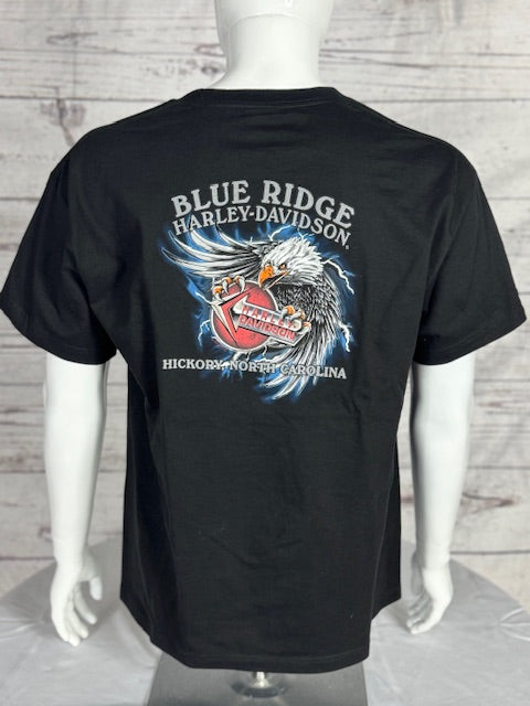 On the back, our exclusive Blue Ridge Harley-Davidson logo adds a personalized touch that celebrates your connection to the road. Perfect for riding days or casual outings, this tee is a must-have for Harley enthusiasts who love blending iconic imagery with comfort.
