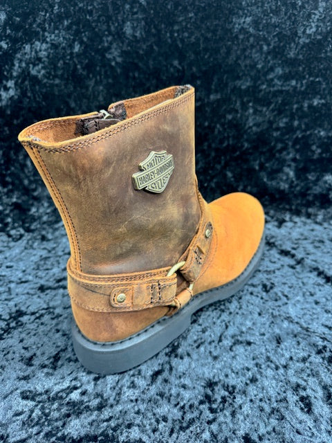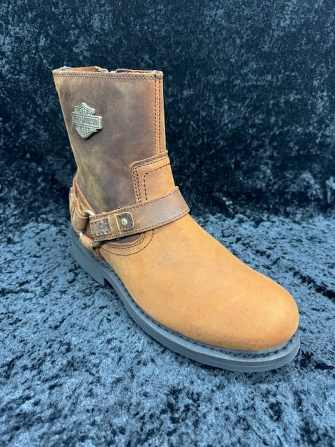 The Scout is a fan-favorite for a reason. Made from full grain leather with classic harness styling, this boot delivers rugged durability and iconic Harley-Davidson® attitude. A large metal Bar & Shield graphic makes a bold statement, while the Goodyear® welt construction and rubber outsole provide long-lasting support. Easy on/off with a YKK® locking inside zipper.