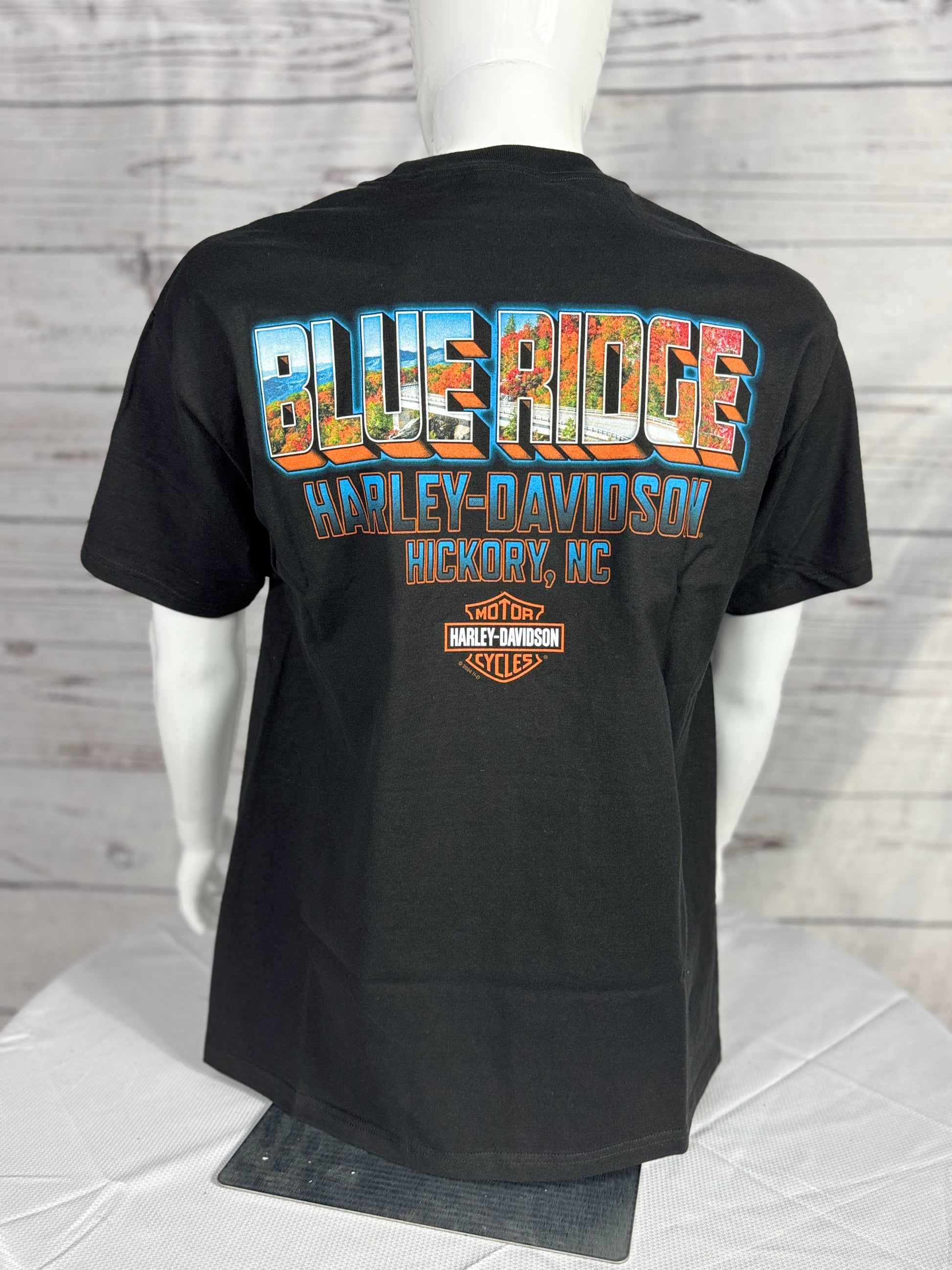 Show off your lucky side with the Harley-Davidson® Men's Black Sahmrock Skull T-Shirt. This short-sleeve tee features a bold graphic of a skull surrounded by clovers, paired with the daring phrase "Feeling Lucky?" for a fun and fearless vibe. Crafted from soft, breathable cotton, it provides comfort while making a statement. The back proudly displays our custom Blue Ridge Harley-Davidson® logo, making this tee the perfect addition for riders who live on the edge with a little luck on their side.