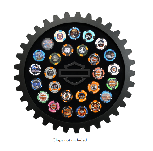 Showcase your collection with the H-D™ Die Cut Round Gear-Shaped Magnetic Frame. Perfectly blending form and function, this frame is designed for Harley-Davidson enthusiasts who want to display their poker chip collection in style.