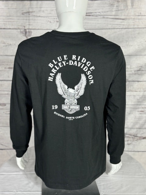 The back is finished with our custom Blue Ridge Harley-Davidson logo, making this tee a proud nod to the Harley lifestyle. Made from premium cotton, it offers all-day comfort and durability, perfect for cooler weather and casual outings.